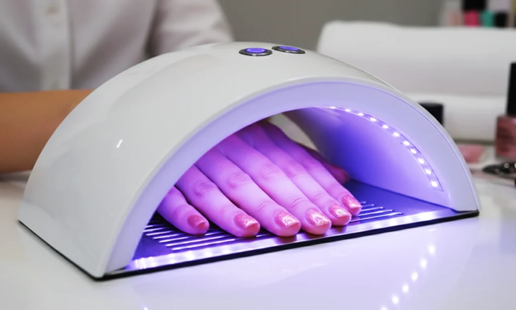 Nail curing lamps mainly emit UVA, which can contribute to skin aging with frequent, long-term exposure. That being said, during a typical manicure, exposure time is short and the dosage is low. If you get gel manicures often, simply apply sunscreen to your hands or wear UV-protective gloves before curing. It’s easy and effective.