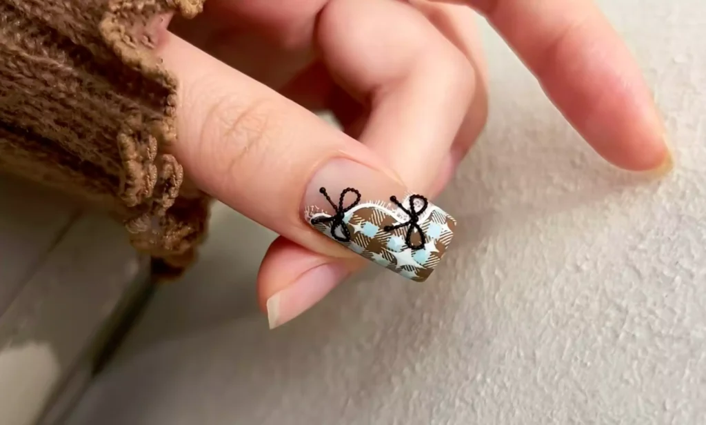 Hola a todos Soy un empleado estrella en CHROMÉCLAIR, una marca de esmalte en gel sin hema Hoy os traemos este tutorial de uñas con estampado de cuadros escoceses en azul y marrón, que combina el encanto retro de los cuadros escoceses con la calidez de los tonos azules y marrones. Combinado con delicados detalles de lazos, te permitirá irradiar elegancia este otoño-invierno.