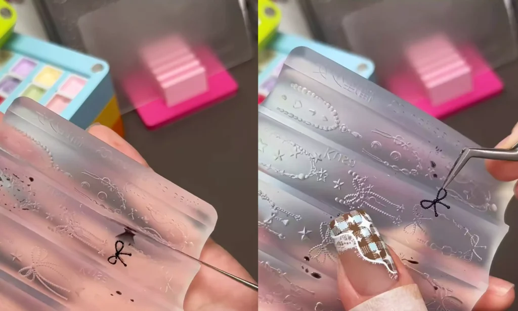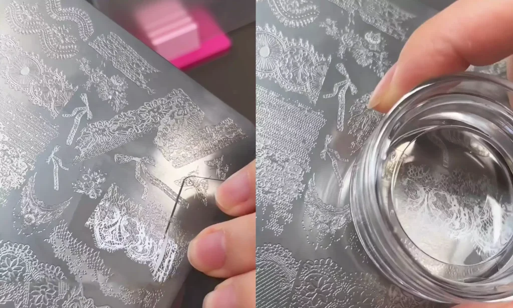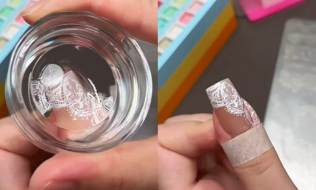 Esto añade un toque de delicada textura de encaje a la manicura, como si vistiera las uñas con una fina prenda de encaje.