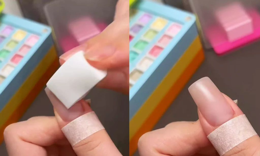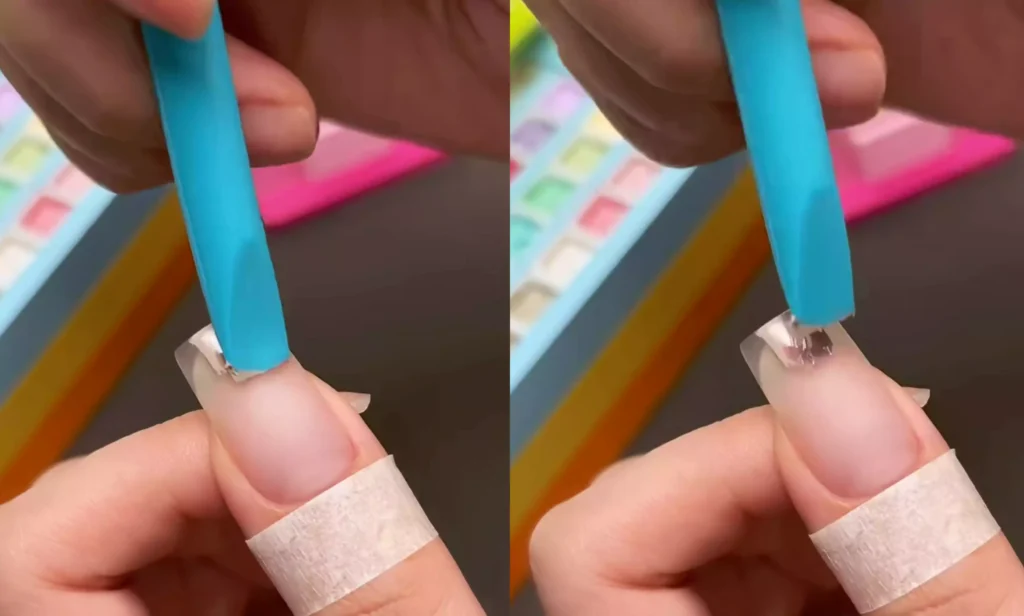 Aplíquelo suavemente sobre la uña para disimular el borde libre y sentar las bases para la posterior aplicación del diseño. Esto crea un efecto de degradado natural, haciendo que las uñas parezcan más rellenas.