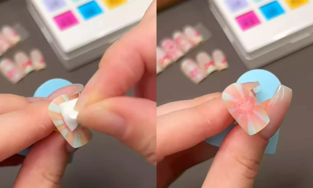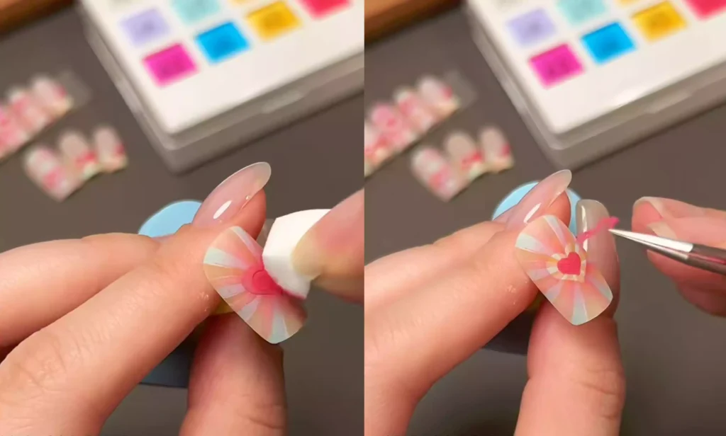 Ajoutez ensuite une autre couche de profondeur à la zone centrale du cœur, en renforçant son effet tridimensionnel et son dégradé de couleurs, comme si un bonbon en forme de cœur était incrusté sur le bout de votre doigt.