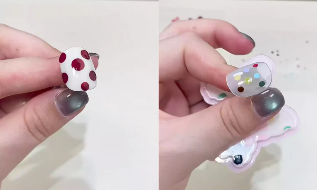 Are you still struggling with thick, misshapen dots when painting polka dot nails? Do large dots prove difficult to create and resist drying under the lamp? Today, we’re sharing two methods for achieving delicate, lightweight polka dot nails-simple steps for quick results.