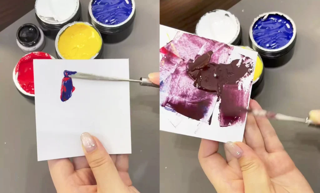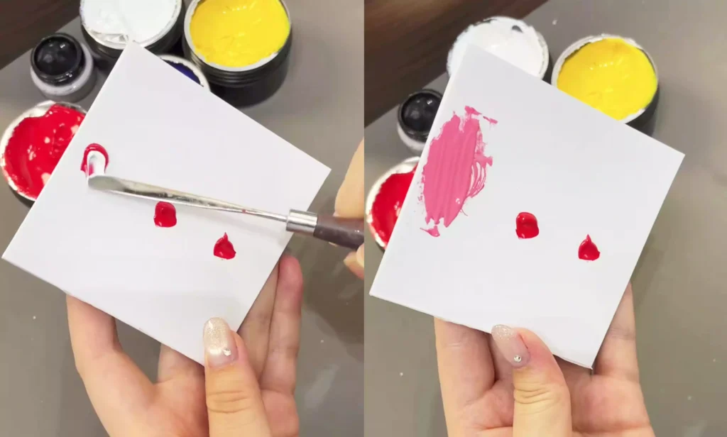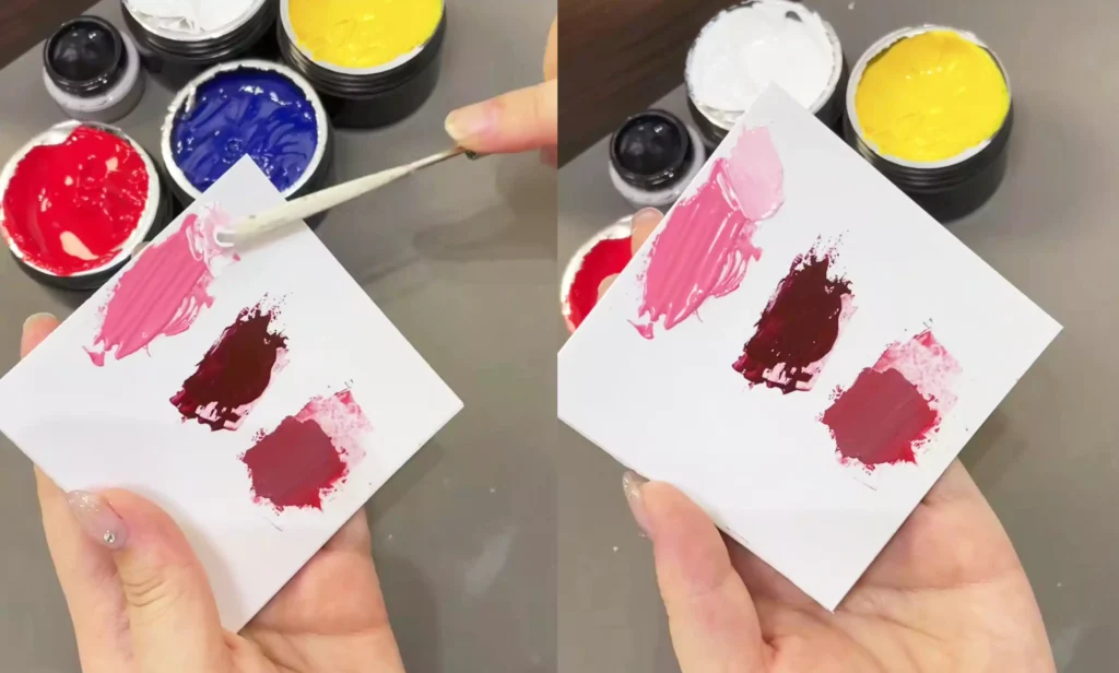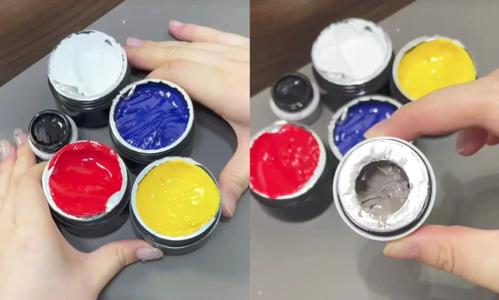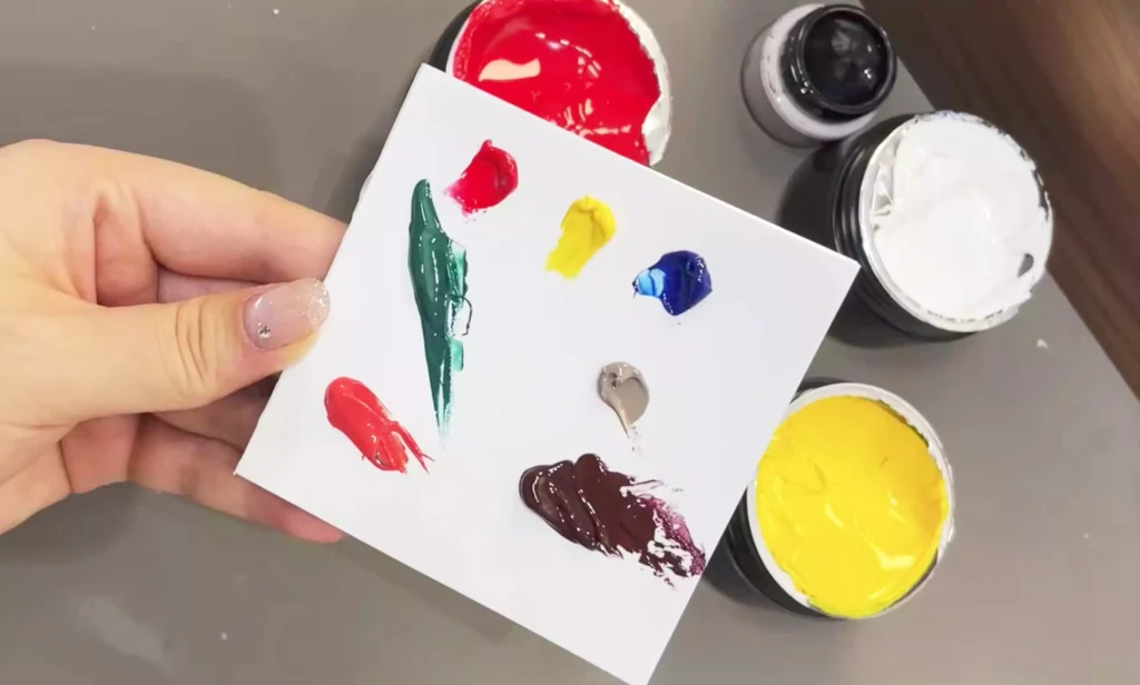 First, prepare five colors of glue: red, yellow, blue, black, and white, plus one gray glue. With these basic colors, you can mix countless different shades.